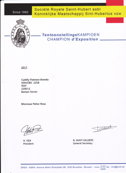 Wie die Zeit vergeht... Wir haben Brenda noch als Baby im Gedächtnis und heute erreicht uns die Nachricht, dass Brenda alle Anwartschaften für den Championtitel in Belgien errungen hat. Herzlichen Glückwunsch an die Besitzerin Rosa in Belgien